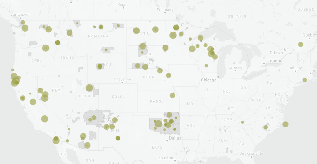 Some of the other new resources added to the NLIS in the last two years include our series of Water Quality Viewers, such as our Pesticides on Native Lands map, and our series of Federal Spending Dashboards, which seek to increase transparency and tribal access to data about the BIA Budget, Farm Service Agency Disbursements, and Federally Funded Projects in Indian Country.